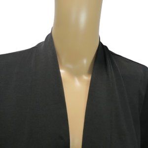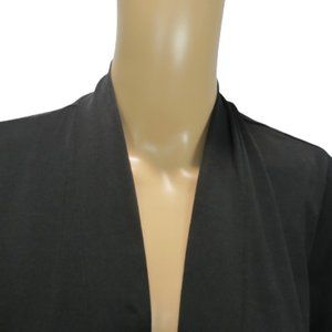 This open cardigan with short sleeves is a versatile and modern piece. It features a open front and elastic style back waist. This allows for easy layering over different outfits The short sleeves gives it a casual and breezy feel, while the length creates a flattering silhouette, making it perfect for paring with high waisted jeans or skirts. Its lightweight design makes it perfect for transitioning between seasons.