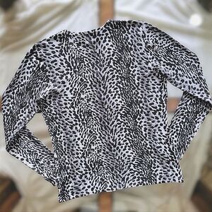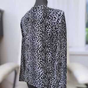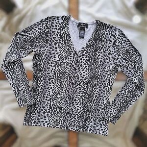 Nina Leonard grey cheetah print soft ribbed cardigan Size M