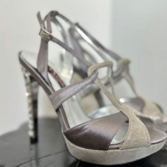 Nina New York Womens Leather Studded Stiletto Heel Sandals Size 7US Gray