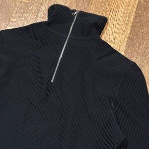 Nina Ricci Reverse 1/4 Ribbed Mock Neck Viscose Stretch L/S Shirt Womens Medium
