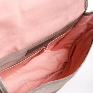 This unique shoulder bag from Nina Ricci is crafted from a mix of leather, suede, watersnake skin, and fur trimmings on the flap. This bag flaunts two rolled leather handles in a bracelet style, a back zipper pocket, a watersnake shoulder strap, and a gold-tone twist-lock front clasp at the flap. This fun bag opens to a spacious interior lined in pink grosgrain canvas equipped with two slip pockets.
