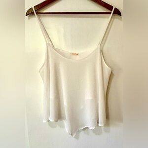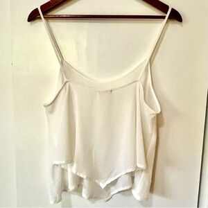 Nine Bird flowy asymmetrical white camisole size large. Perfect for layering or wearing alone, its spaghetti straps add a touch of elegance to any outfit.