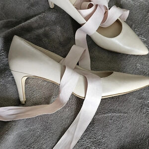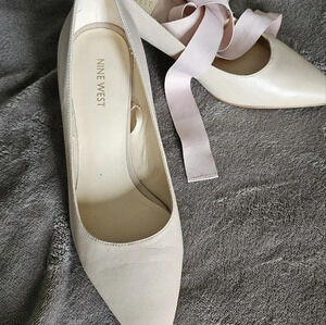 Nine West Arlene Pump Heels Ribbon Leather Ivory Nude Size 8.5