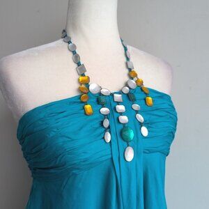 total length: (from top of bust to bottom because it's tied at the neck so hard to measure): 30"
