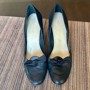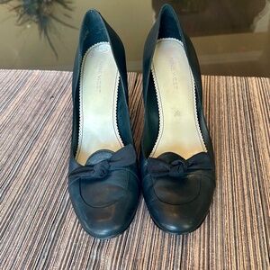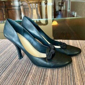 Nine West Black Leather Closed Toe High Heels with Bow Detail Size 10
