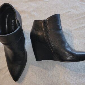 Nine West Black Wedged leather Booties. Size US 8 (EUR 38, UK 6)