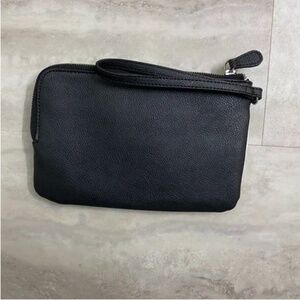 Sleek and versatile black and white color block wristlet in excellent used condition — carried only once. Features two compartments to help keep your essentials organized while on the go.