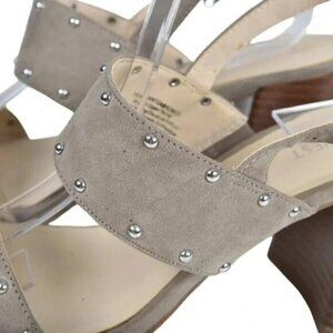 Nine West Block Chunky Heel Sandals Beige/Grey Open Toe Sling Back Size 10