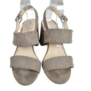 Nine West Block Chunky Heel Sandals Beige/Grey Open Toe Sling Back Size 10