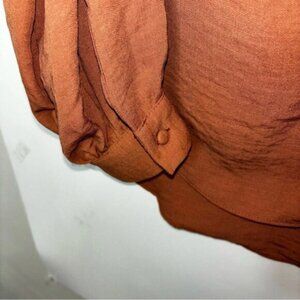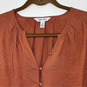 Nine West Blouse Women’s Medium Light Rust Button Up Soft Button Cuff V-neck
