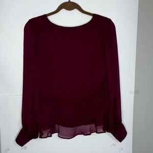 Nine West Blouse Women’s Medium Wine Maroon Lined Button Up Ruffle Flowy Dressy