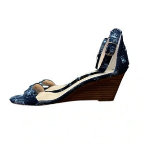 Nine West Blue Denim Sling Back Open Toe Wedge Heels Size 7