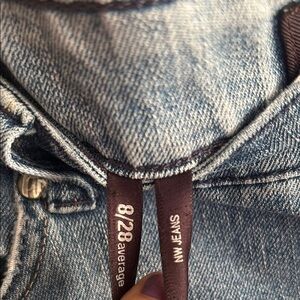 These blue jeans from Nine West have a relaxed yet stylish look. The distressed detailing at the knee adds a modern edge, while the faded wash gives them a classic, worn-in feel. Ideal for casual outings, these jeans combine comfort with contemporary style. *second hand condition I think the cuffs have been undone as the bottoms are less faded.