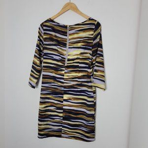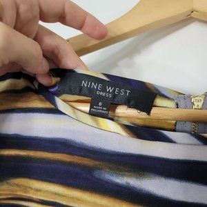 Nine West Brown White Navy 3/4 Sleeve Boat Neck Back Zip Business Casual Dress 6