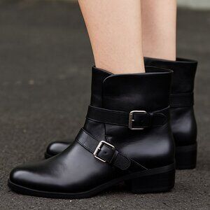 Tag: leather booties, ankle boots, buckle boots, double buckle booties, block heel booties, round toe boots, modern boots, fall boots, winter boots, everyday boots, soft leather boots, genuine leather, silver hardware, trendy booties, classic style, chic ankle boots, street style, minimal style, capsule wardrobe, fashion essential, neutral boots, modern chic, versatile shoes, stylish footwear, elevated basics, closet staple, Preppy, Parisian, Work, Casual, 60's, 70's, 80's, 90's, Y2K