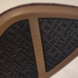 Nine West heels in a rich burgundy-brown snake-embossed leather. These elegant pumps are new and never worn, very comfortable.
