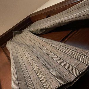 Great quality Suit pants with grey check pattern that lines up at the seams. Between straight leg and wide leg.