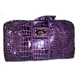 * Nine West Clutch Purse - Purple Faux Snakeskin Leather with Bow - Foldable