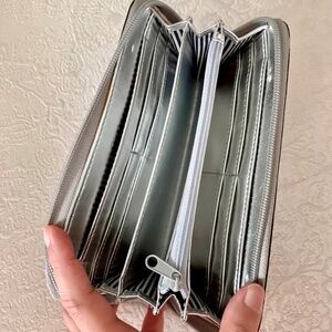 Grey Nine West clutch/wallet. Stylish with silver studs.