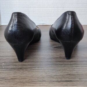 Nine West Comfort Wedge Pumps Size 7 Black Leather Minimalist Dress Shoes