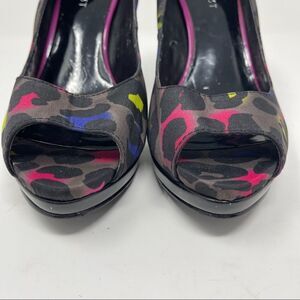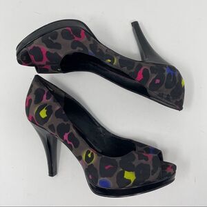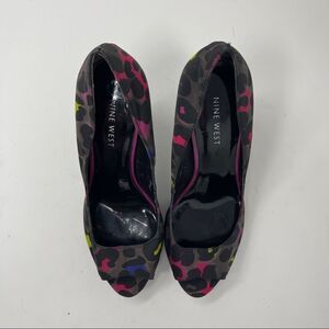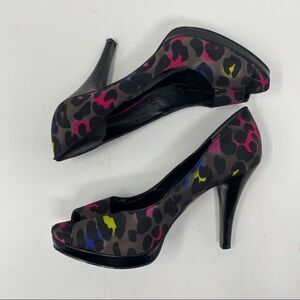 Nine West Danee Neon Leopard Print Peep Toe Heels Platform Women's 6M