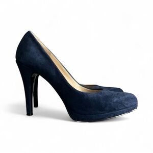 Chic dark blue suede platform heels. Perfect for any occasion. Comfortable and stylish. Sold without box.