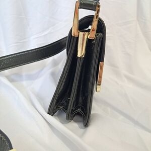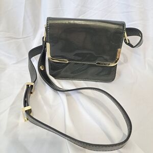 Nine West | Dark green mini purse with long strap & gold details . I don't believe it leather, has a smooth feel to it.