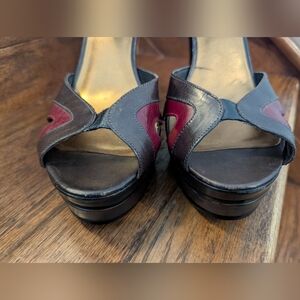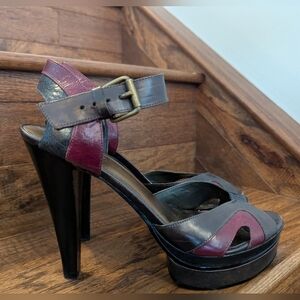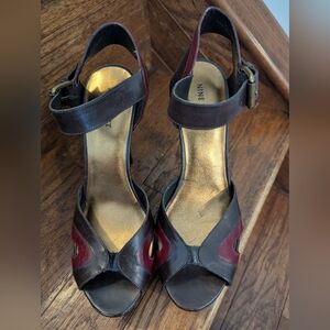 Nine West Debutante 5" stacked Heel Ankle Strap Three Tone Leather pumps size 7.5