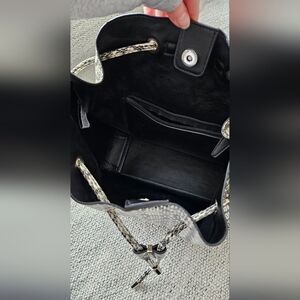 This stylish black and white snake print bag is perfect for any occasion. Its elegant design makes it a versatile accessory for your wardrobe. excellent condition