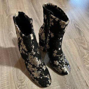 Step up your style with these stunning Nine West heeled boots, featuring intricate embroidery and a sleek silhouette. Perfect for adding a bold touch to your fall and winter wardrobe. Comfortable fit with a sturdy heel, ideal for both day and night looks. Gently worn and in excellent condition.