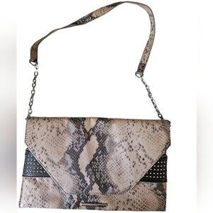 Nine West Faux Snake Skin Clutch with Removable Strap and Magnetic Closure