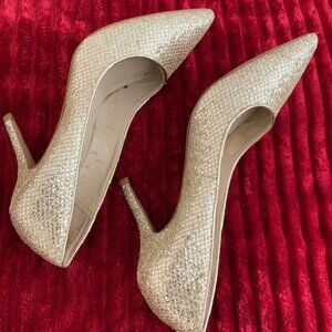 Nine West Gold Sparkle High Heels Pump Shoes (Pre Owned) Slip-On Size 7