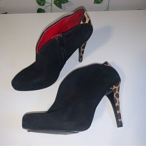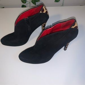 Nine West Heeled Booties Women's Size 6.5 US Suede Leopard Print Black Red