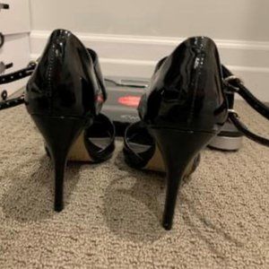 Black patent nine west heels in excellent condition. These shoes are super sexy and comfortable and strap around the ankle makes the outfit look even sexier. From smoke and pet free home.