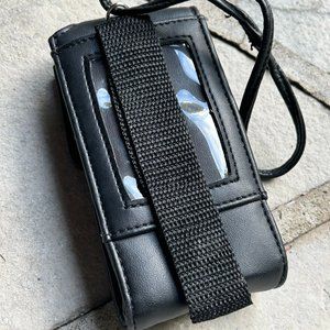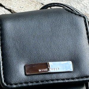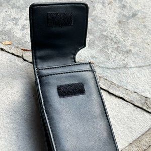 I have a lightly used Nine West Holster Pouch that is great for carrying cell phones, sunglasses or ID. It is black in colour, features a Velcro strap on the back to attach to a belt or backpack and a pouch to insert ID. Item inside the pouch are secured by a Velcro fastener on the flap. There are two pockets in the interior. Also features a wrist strap if you decide to carry the pouch.