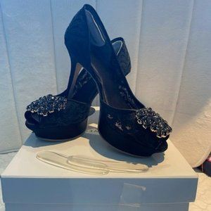 Simply gorgeous dressy Jaquita platform shoe from Nine West / size 7M / condition: excellent. Soft soles and heel savers have been installed and additional set of heel savers to be included. Worn twice in like new condition. See additional details below: