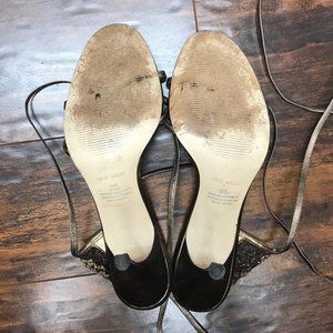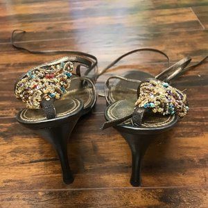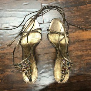 Nine West lace up sandals with rhinestone embellishments and gold hardware.