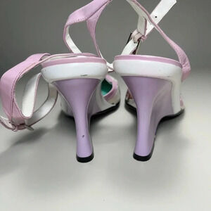 Nine West Leather Ankle Strap Wedge Pastel Color Canvas Print Shoes