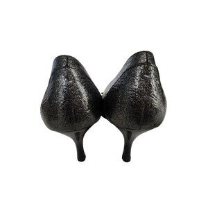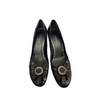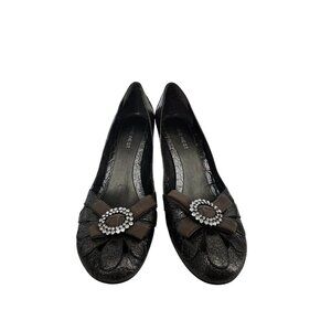 Nine West Leather Black Textured Heels With Rhinestone Bow Accent Size 9M