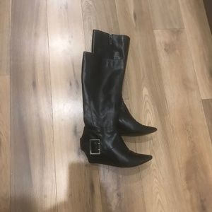 Gorgeous Nine West Boots - with wedge heel and dressy pointy toe. Looks fabulous with a dress or jeans or tights. Great detailing and zipper for easy on and off.