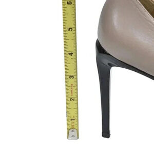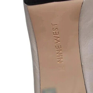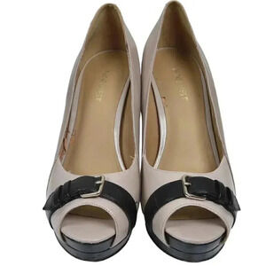 Nine West Leather Platform Pump Stiletto Heel Open Toe Beige Tan Black Size 8