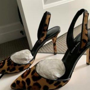 A sharp, pointy toe and a low-cut slingback. This is an elegant shoe. Size 7.5 and never worn. This heel is stunning and will go well with any outfit.