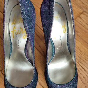 Nine West Love Fury Sparkly Platform Heel Shoes 7
