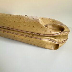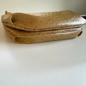Nine West NWT Camel Faux Leather Ostrich Embossed Textured Tote Bag. Very Stylish & versatile, Lots of room for all your essentials. Magnetic snap closure. Durable wide weaved handle. Interior zipper pockets, + wall pockets, yellow satin ling. Great for work items, weekend getaways, cottages, & travel.