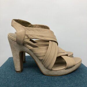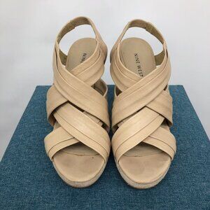 Nine West Nude Leather Suede Victoria Cut Out Platform 5" Slingback size 5.5