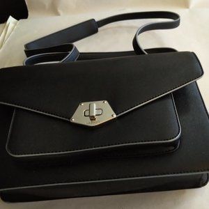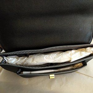 Long shoulder strap-20"--wide strap at top to secure to shoulder-- can also be shortened for hand bag use