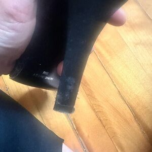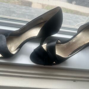 Nine West elegant version of a peep toe perfect heel height and extremely comfortable for a heels. Small snag of fabric of one heel (as pictured)