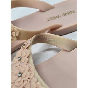 Nine West Pink Flower Embellished Thong Sandals Slip On Flip Flops Size 6 Womens