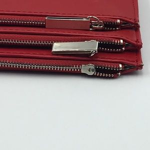 Nine West Red 3 Zippered Compartment Clutch Purse/1 Pull Tab For Zipper Missing
