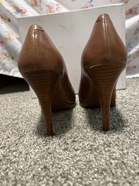 Design Features: This is a classic almond-toe pump with a slender stiletto heel and a hidden platform. The heel height is typically around 4 inches with a 1/2-inch platform.